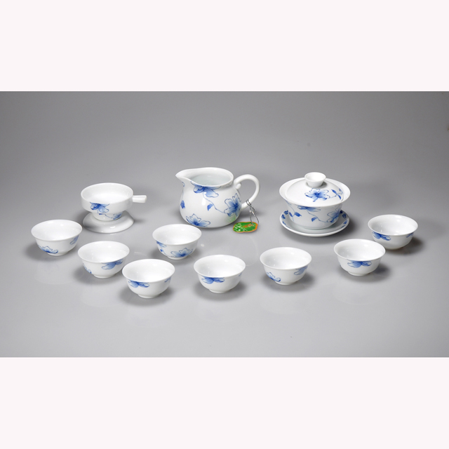 Super White Fine Porcelain with Blue Decal Art Gongfu Tea Set